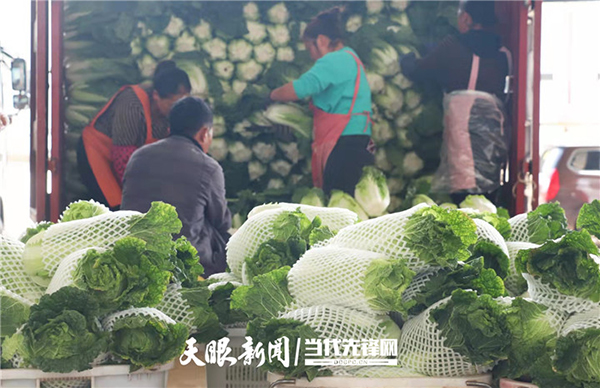 冷库前,精心包装的蔬菜蓄势待发。据悉,威宁江楠现代物流产业园现阶段每天外销蔬菜700多吨,共30余个种类。24小时之内,这些冷凉蔬菜就可抵达广州江南市场,端上餐桌时新鲜度不减。