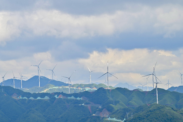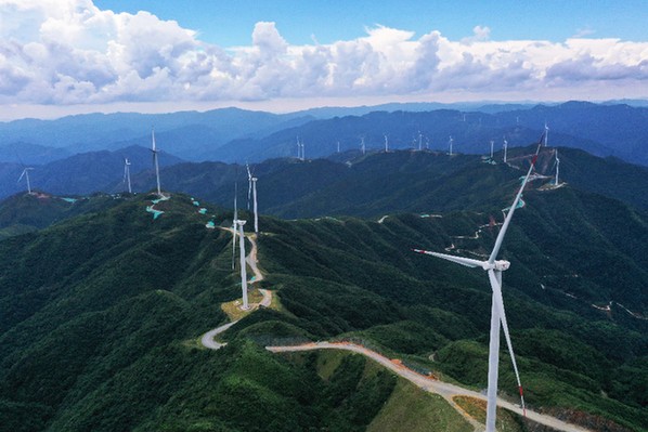 2021年8月18日拍摄的贵州省从江县秀塘乡风力发电场。(吴德军 摄)