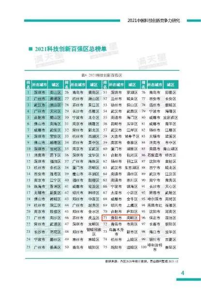 近日,工信部下属研究机构赛迪顾问发布《2021中国科技创新竞争力研究》,并揭晓了“2021科技创新百强区总榜单”,其中,南明区位居第71位,是贵州省唯一入选区。