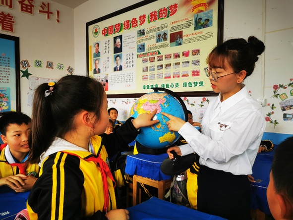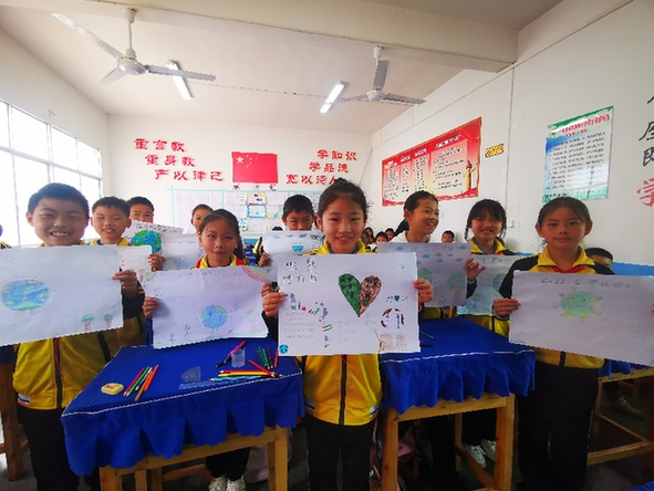 石阡县泉都雷屯小学学生们展示他们心中的地球