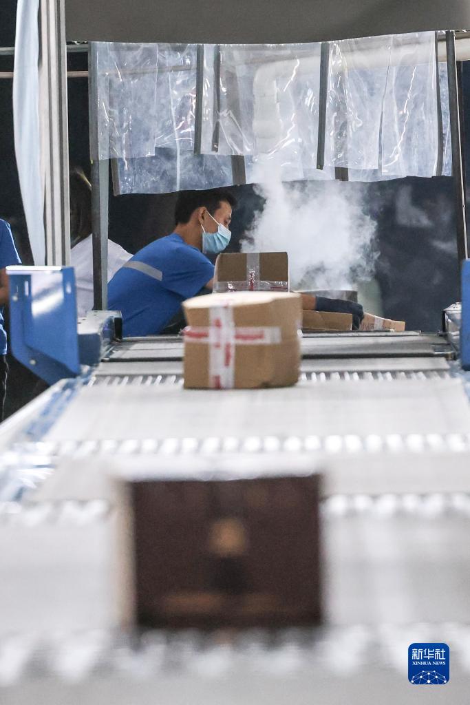 6月6日,工作人员在贵州快递物流集聚区内分拣快递。新华社记者 欧东衢 摄