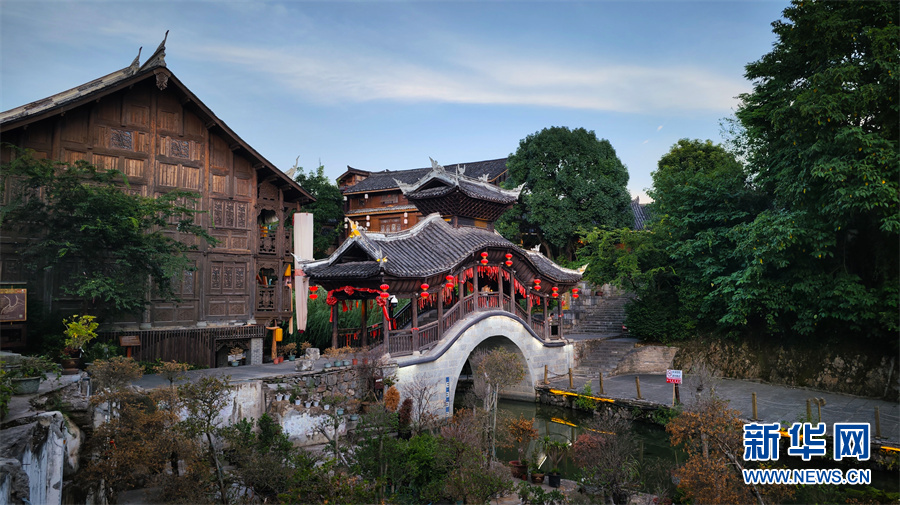 下司古镇一处拱桥设计的“非典型”苗族风雨桥。新华网 卢志佳 摄