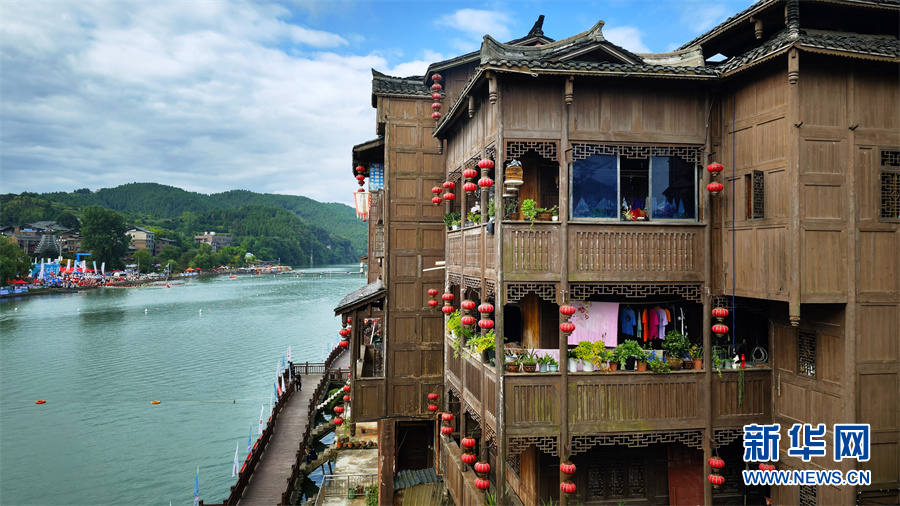 下司古镇修建在清水江畔的苗族吊脚楼。新华网 卢志佳 摄