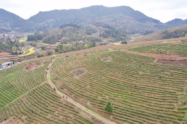 凯里市碧波镇王义村种植茶叶基地一角。(周建国 摄)