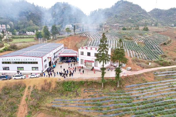 位于凯里市碧波镇王义村的贵州省旭缘茶叶有限公司荼叶加工厂正式投产全景。(周建国 摄)
