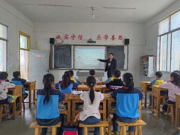 汪河小学的学生们正在上课