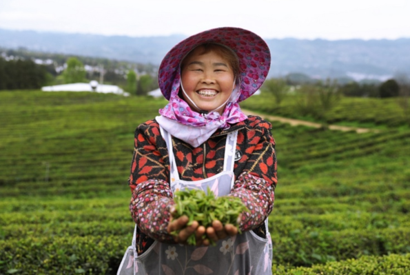 农户手捧刚摘下的新茶喜笑颜开。满帮集团供图