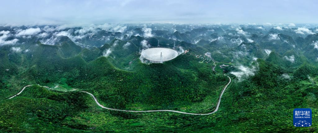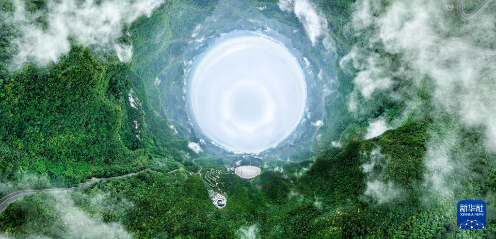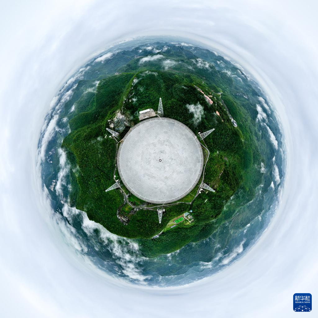 6月22日拍摄的“中国天眼”全景(维护保养期间拍摄,无人机全景拼接照片)。新华社记者 欧东衢 摄
