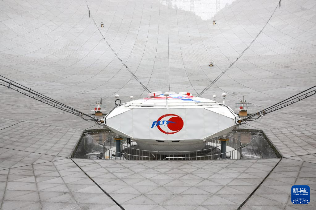 6月22日拍摄的“中国天眼”馈源舱(维护保养期间拍摄)。新华社记者 欧东衢 摄
