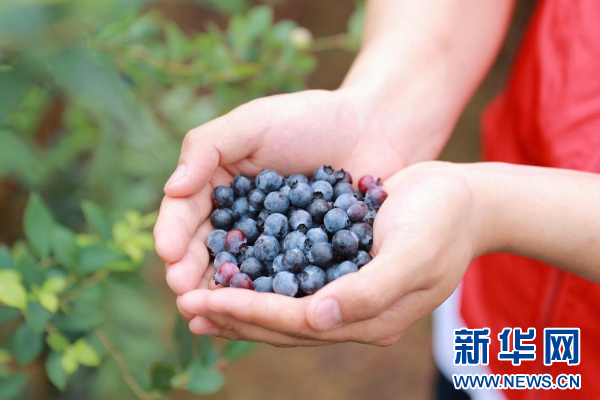 后庄村丰收的蓝莓果。新华社发(令狐菲摄)