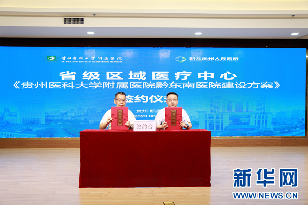 新华网贵阳6月29日电 为推动优质医疗资源扩容下沉,更好地满足群众就近享有高水平医疗服务的需求,6月28日,贵州医科大学附属医院与黔东南州人民医院举行省级区域医疗中心合作签约揭牌仪式。