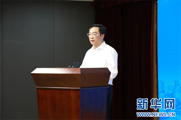 贵州医科大学附属医院党委书记李海洋致辞。新华网发(林建摄)