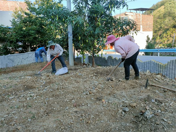 坝奔村村民在整治房前屋后空地计划种植柠檬果苗。