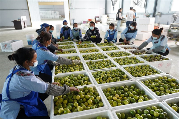 边铙镇播东村积极探索“红色文化+绿色产业”模式,将丰富的红色文化优势转化成为农民致富的绿色产业优势。图为村民们在百香果产业基地务工增收。