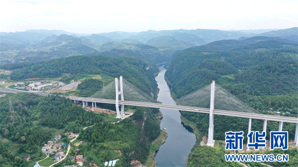 6月28日航拍的尚嵇乌江服务区旁的楠木渡乌江大桥。新华网 周远钢 摄