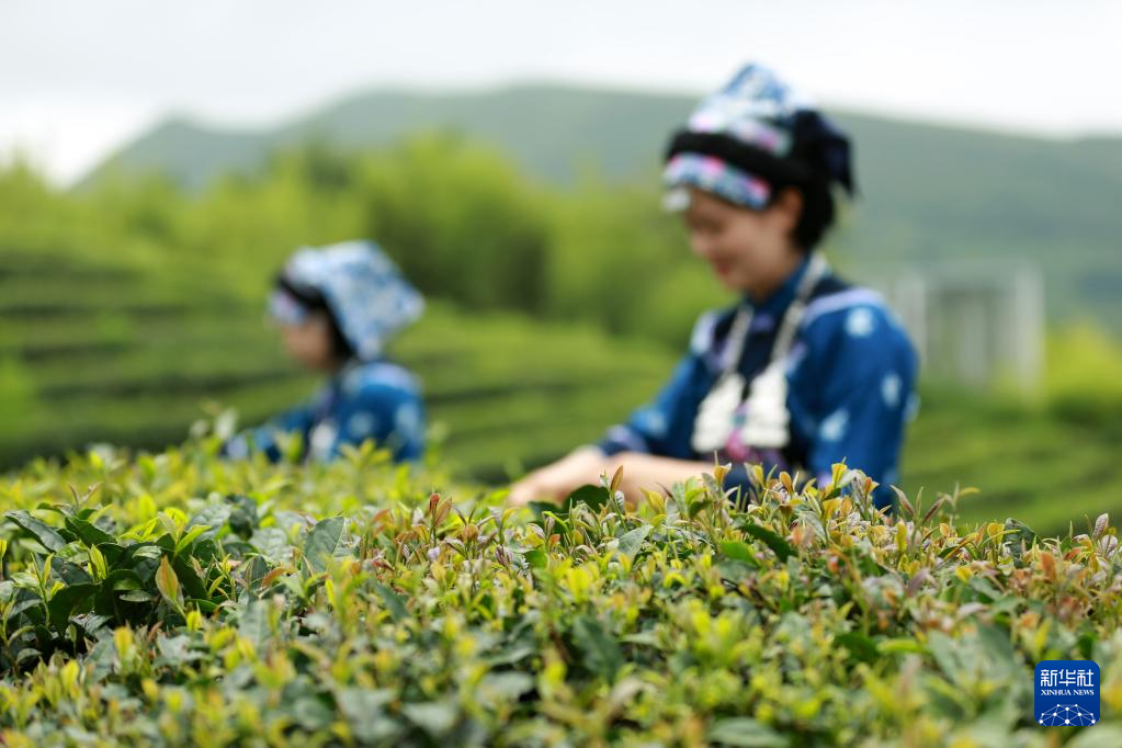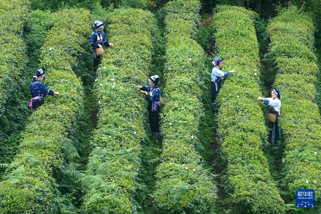 7月1日,茶农在都匀市毛尖镇坪阳村茶山采茶。新华社发(肖伟 摄)