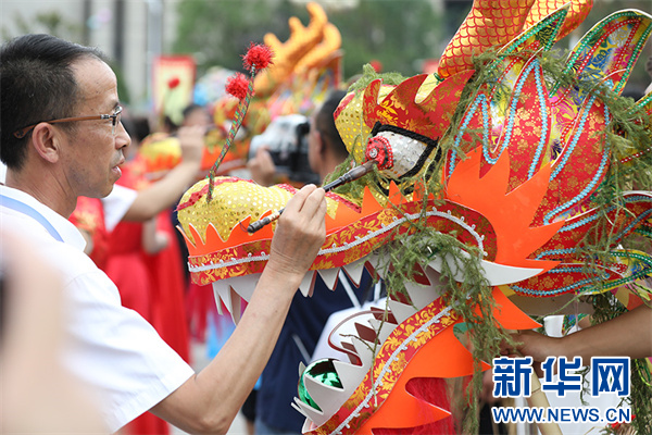 开幕式上,嘉宾笔蘸朱砂为9条水龙点睛。在震天的鼓点声中,水龙传承队表演、龙女献宝、护龙队表演、水龙表演热闹上演,现场气氛推向高潮。