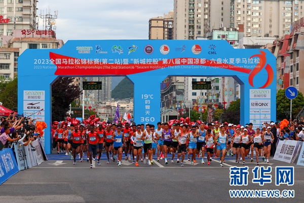 新华网贵阳7月16日电 7月16日上午,2023全国马拉松锦标赛(第二站)暨“新城控股”第八届中国凉都·六盘水夏季马拉松在六盘水市中心城区人民广场鸣枪开跑。