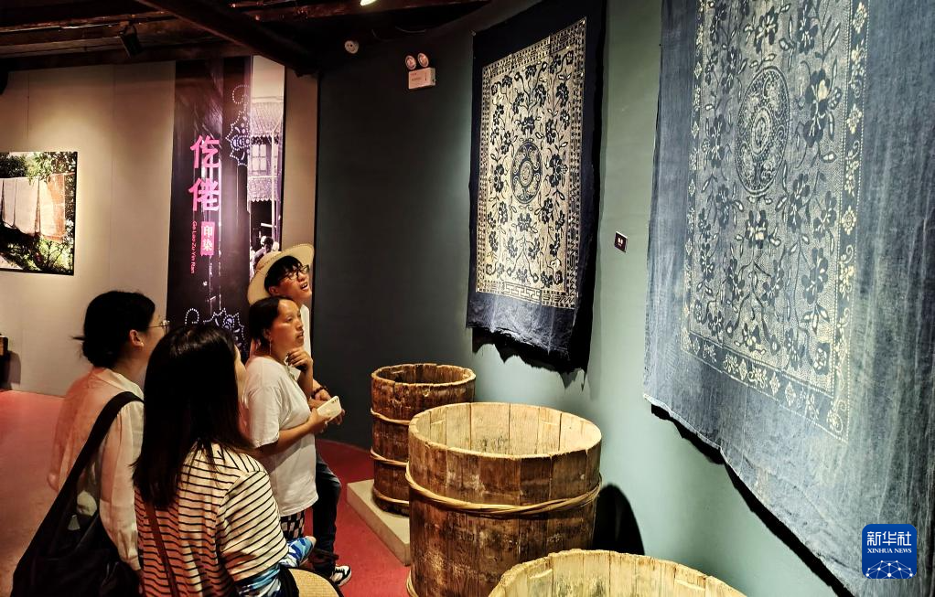 7月16日,游客在铜仁市石阡县万寿广场参观非遗博物馆。新华社发(宁坚 摄)