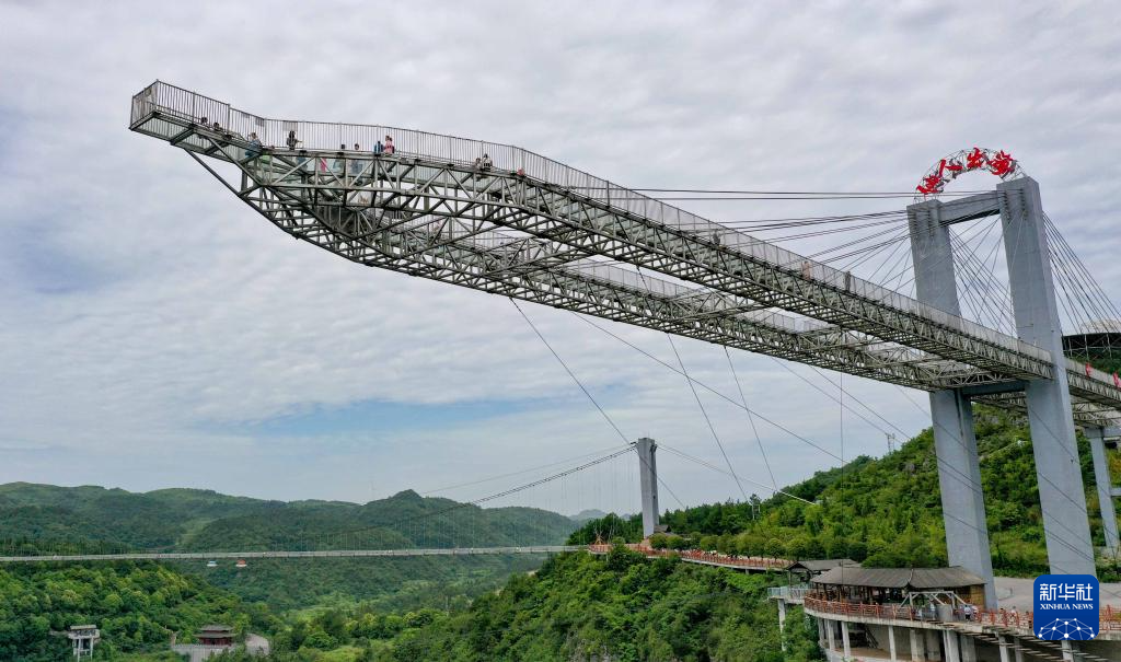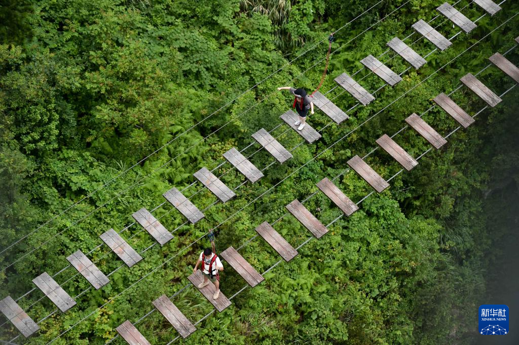 7月16日,游客在铜仁市石阡县龙井乡关口坪村仙人街景区游玩。新华社发(龙元彬 摄)