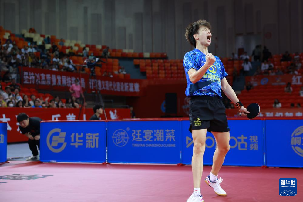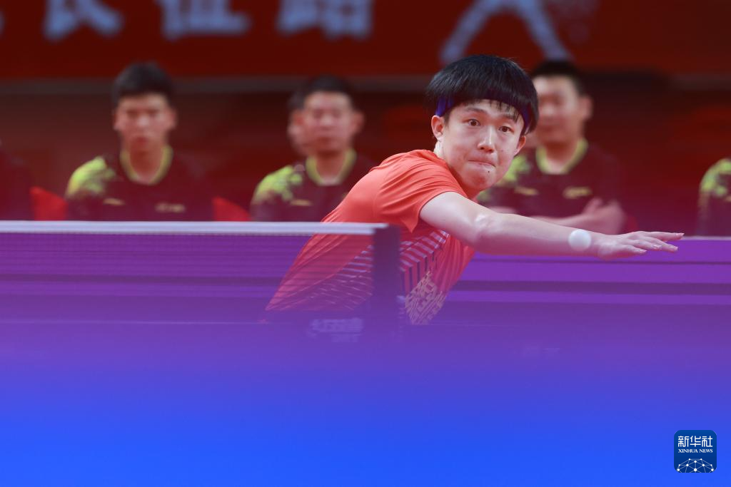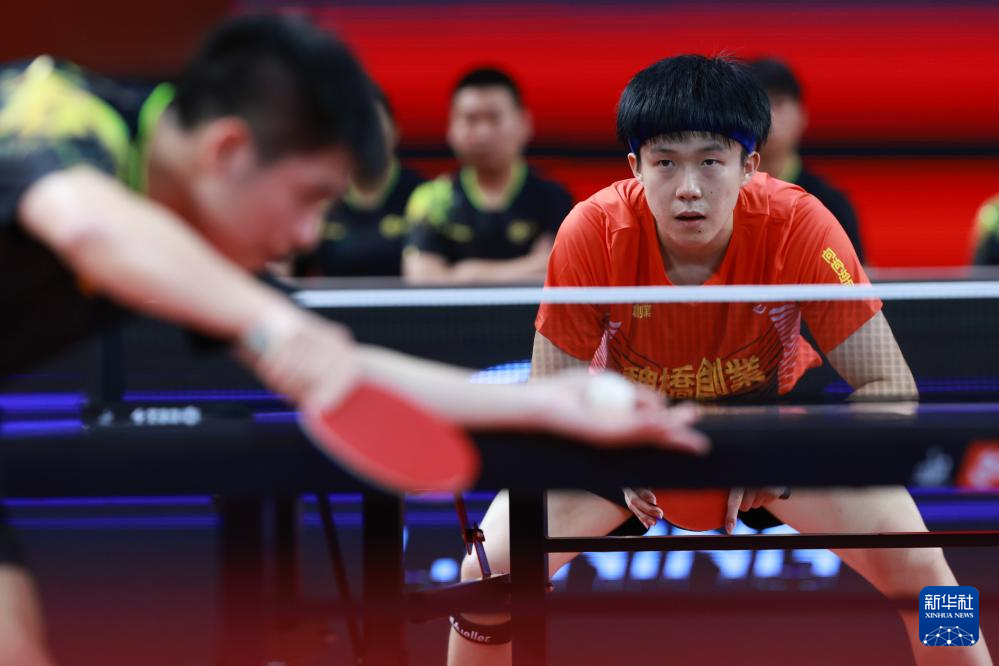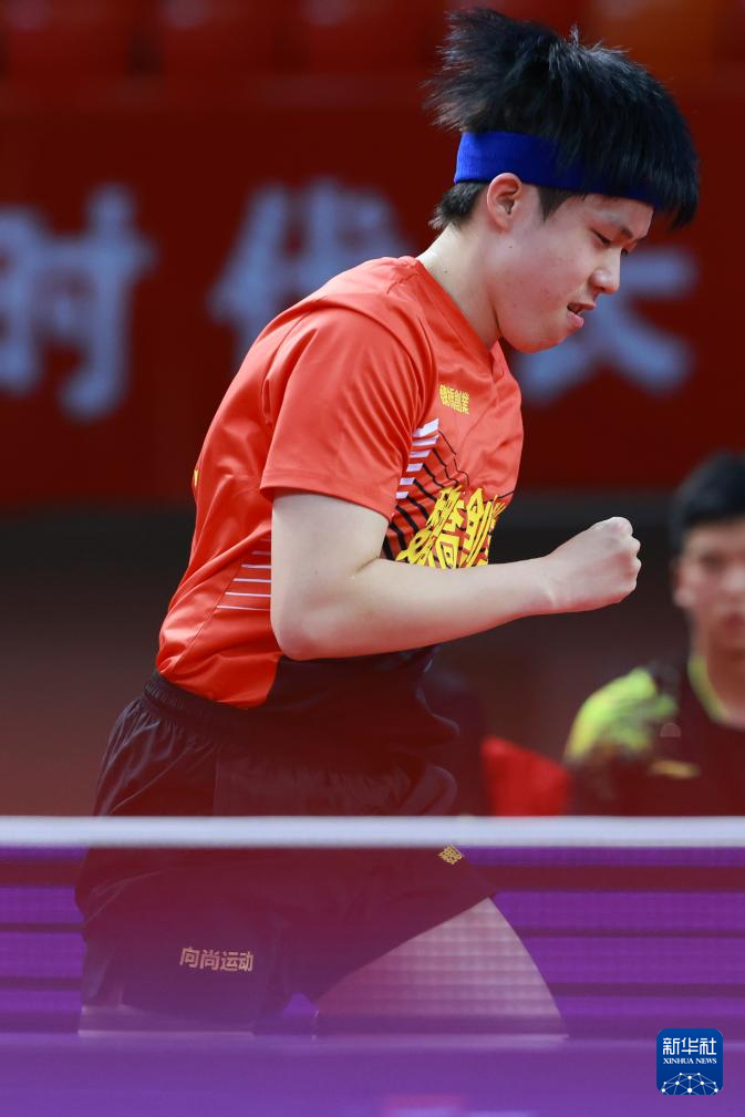 7月18日,山东魏桥队选手王楚钦在比赛中,他以3比1战胜黄石基地队选手林诗栋。最终,山东魏桥队以3比1战胜黄石基地队。新华社记者 刘续 摄pagebreak
