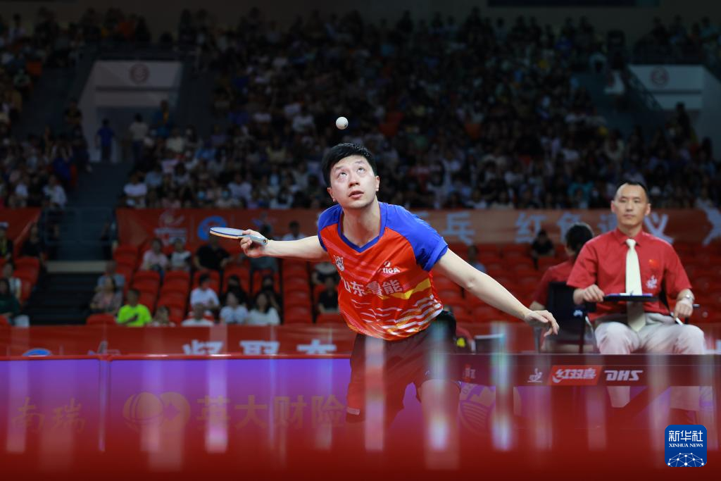 7月18日,山东鲁能队选手马龙在比赛中发球,他以3比1战胜江苏习酒京匠队选手孙佳逸。最终,山东鲁能队以3比0战胜江苏习酒京匠队。