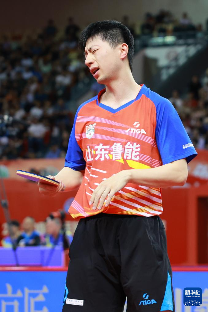 7月18日,山东鲁能队选手马龙在比赛中,他以3比1战胜江苏习酒京匠队选手孙佳逸。最终,山东鲁能队以3比0战胜江苏习酒京匠队。新华社记者 刘续 摄pagebreak