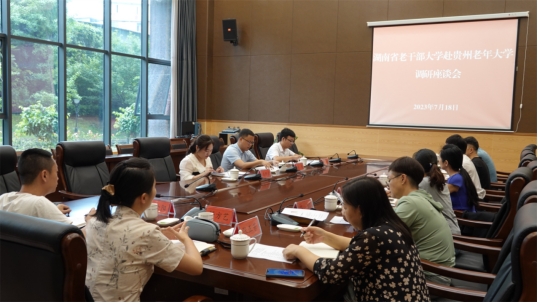 7月18日,湖南省老干部大学副校长许刚一行3人到贵州老年大学考察调研。贵州老年大学党委委员、副校长和琪凯陪同调研,贵州老年大学二级巡视员冉启忠及学校相关处(室)主要负责同志参加交流座谈会。