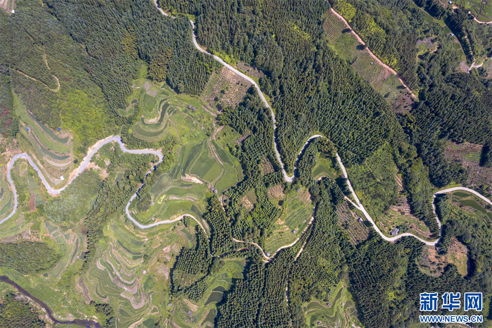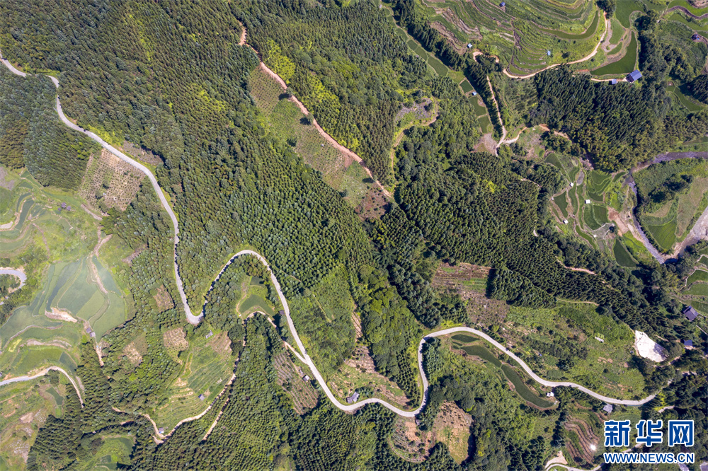 7月23日航拍的贵州省从江县翠里瑶族壮族乡高文村乡村公路。新华网发(吴德军 摄)