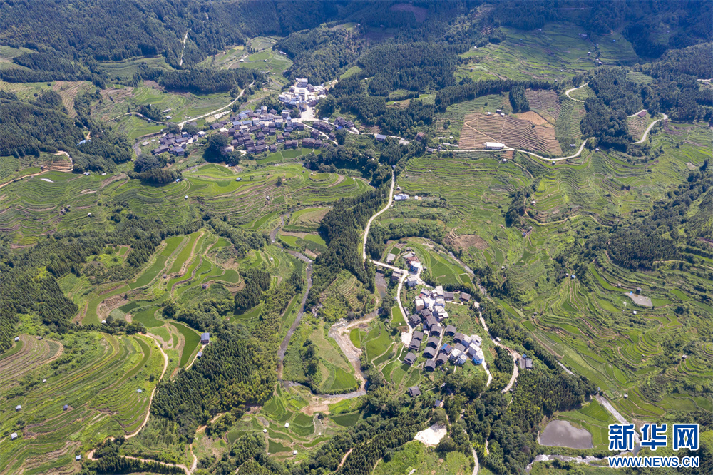 7月23日航拍的贵州省从江县翠里瑶族壮族乡摆翁村乡村公路。新华网发(吴德军 摄)pagebreak