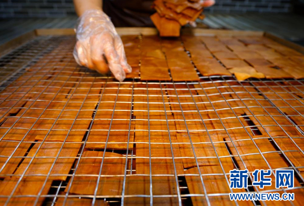 连日来,在贵州省遵义市正安县安场镇安常社区,各豆腐干加工作坊的工人忙着生产豆腐干,供应市场。