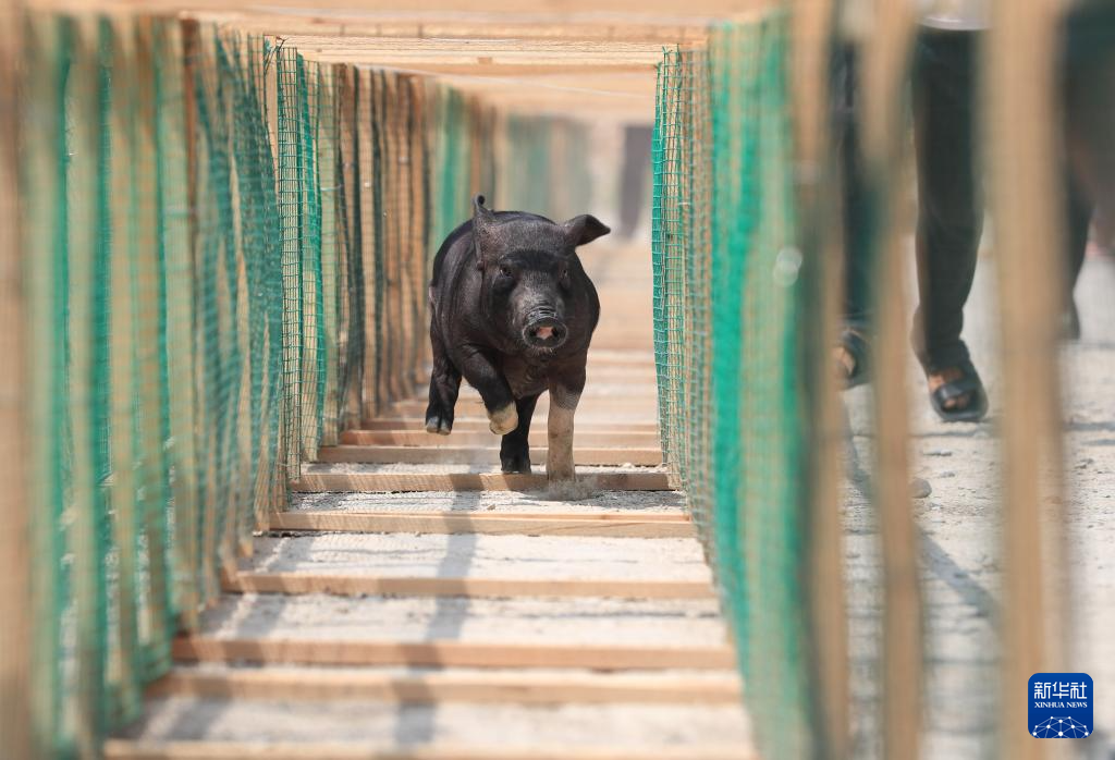 7月30日,在贵州省从江县刚边壮族乡香猪趣味运动会上,一头香猪在进行跑步比赛。新华社发(罗京来 摄)pagebreak