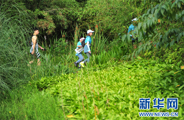 8月5日,亲子趣味定向组选手在比赛中。新华网 卢志佳 摄