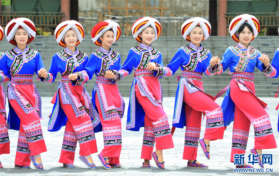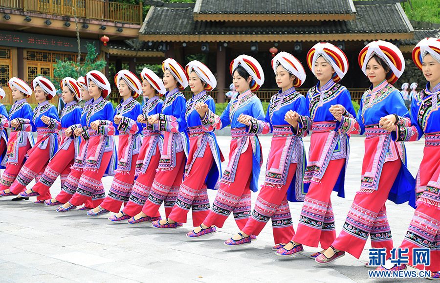 如今,阿妹戚托不仅在彝族姑娘出嫁时跳,只要是重大节日或旅游季节,艺术团都要跳阿妹戚托(8月8日摄)。新华网 卢志佳 摄pagebreakpagebreak