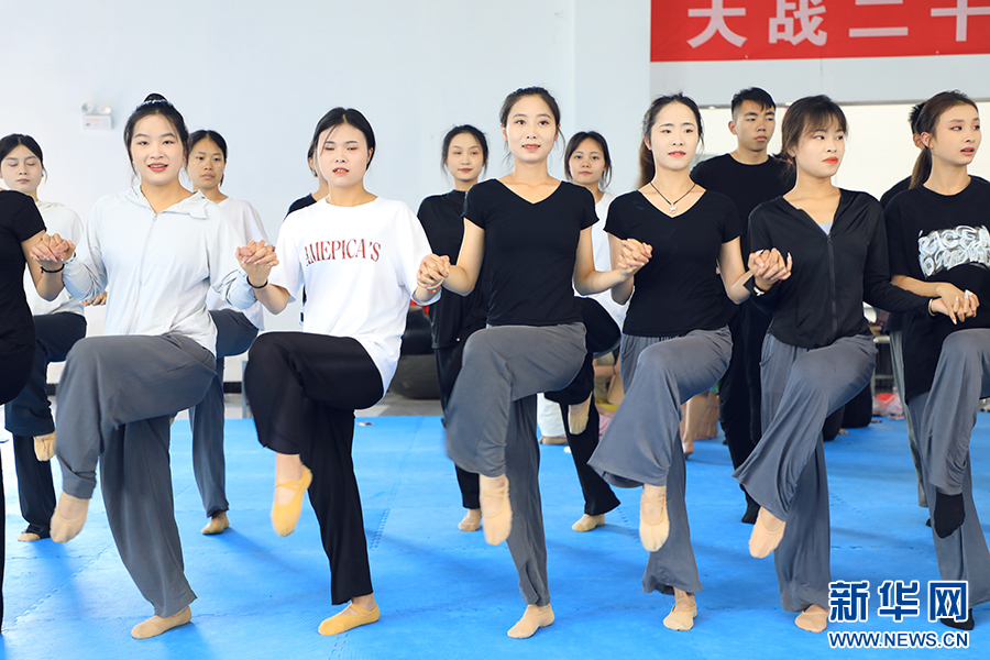 8月6日,舞蹈演员郭露瑶(右一)在练舞,她是遵义绥阳县人,也是去年加入艺术团的舞蹈专业学生。新华网 卢志佳 摄pagebreakpagebreak