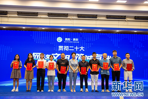 8月10日,为贵阳贵安网络文明志愿者代表颁发证书。新华网发(林建摄)
