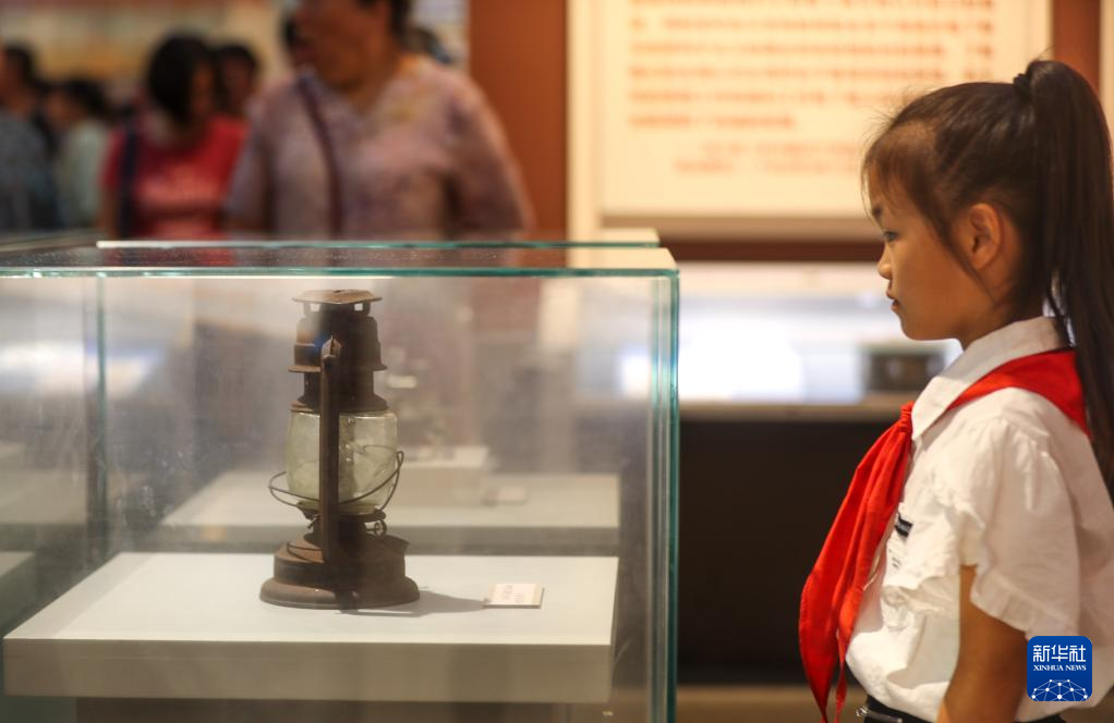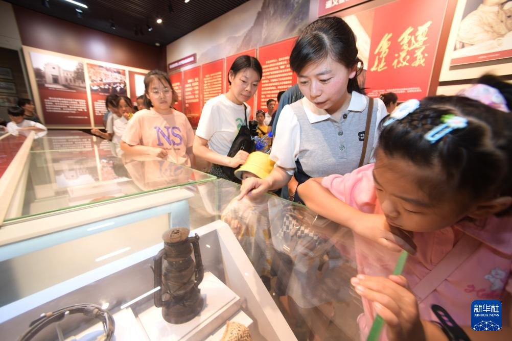 8月13日,一名小朋友在遵义会议陈列馆参观。新华社发(袁福洪 摄)