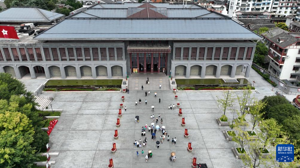 8月13日,游客在遵义会议陈列馆参观游览(无人机照片)。新华社记者 杨楹 摄pagebreak