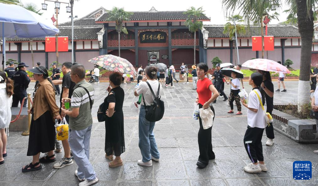 8月13日,游客在遵义会议会址前排队等候参观。新华社发(吴常琛 摄)pagebreak