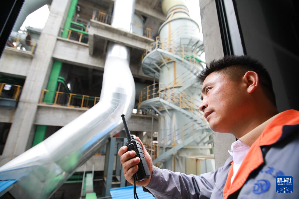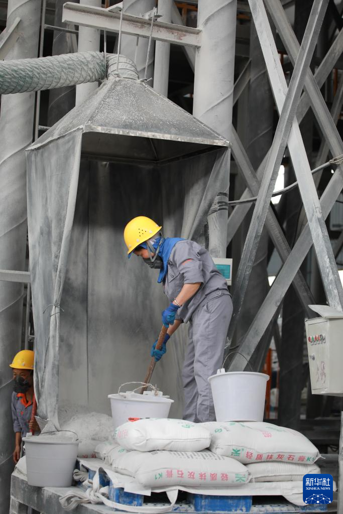 8月14日,工人在贵州磷化绿色环保产业有限公司石膏砂浆生产车间内工作。新华社记者 刘续 摄