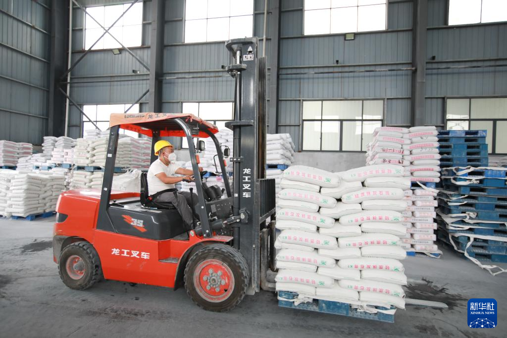 8月14日,工人在贵州磷化绿色环保产业有限公司石膏砂浆生产车间内运输。新华社记者 刘续 摄pagebreak