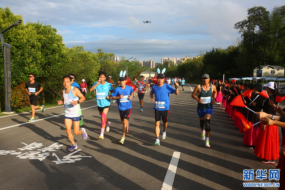 8月13日,参赛选手们在草海湖畔奔跑。