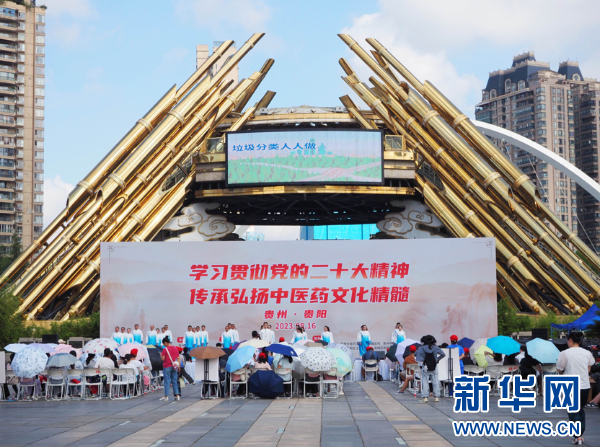 新华网贵阳8月16日电 8月16日上午,由贵州省中医药管理局开展的2023年中医药文化主题宣传活动在贵阳市筑城广场举行。