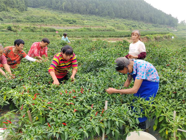 据介绍,辣椒产业是一项劳动密集型产业,除草、施肥、采摘等环节都需要不少季节性劳动力。目前,整个辣椒种植基地已向务工群众支付劳务工资15万元左右,让群众切切实实在家门口就实现就业增收。