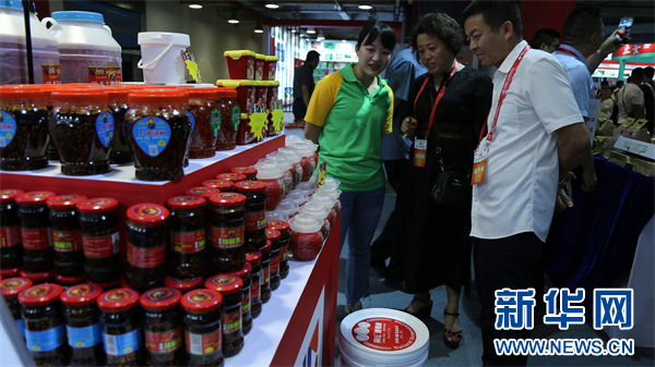 展销会现场,市民选购辣椒产品。新华网 吴雨 摄