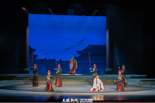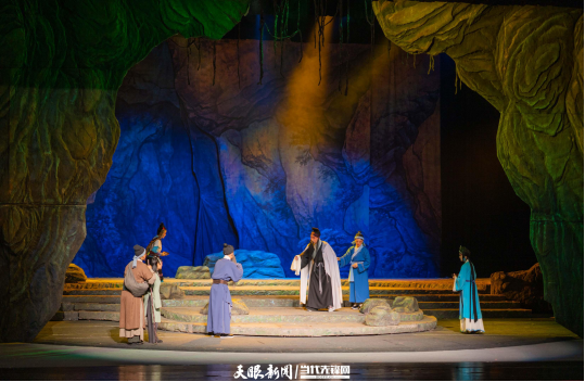 在导演钟海看来,将《阳明悟道》这个经典剧目搬上多彩贵州文化艺术节开幕式的舞台,既是呈现传统文化的一次好机会,也想借戏剧之美,向世界传达贵州的人杰地灵,以及在贵州龙场悟道的心学奥义。(记者 文/周雅萌 图/视频 黄懿歆)