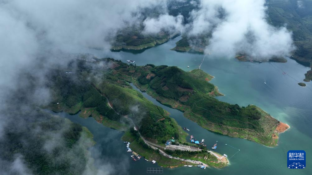 8月25日拍摄的贵州省黔西南布依族苗族自治州兴义市万峰湖景区的风光(无人机照片)。新华社记者 杨楹 摄