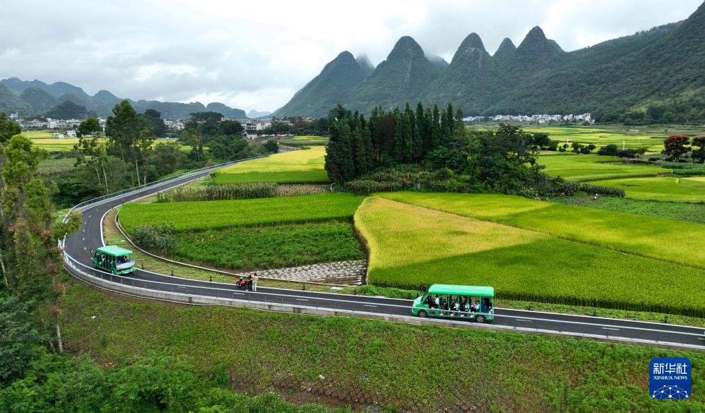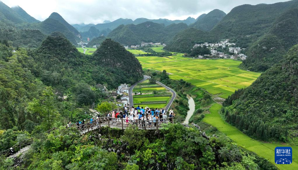 初秋时节,贵州省黔西南布依族苗族自治州兴义市的民居、峡谷、湖泊、奇峰、田园等相映成景,呈现一幅美丽的秋日画卷,吸引各地游客前来休闲、游览。