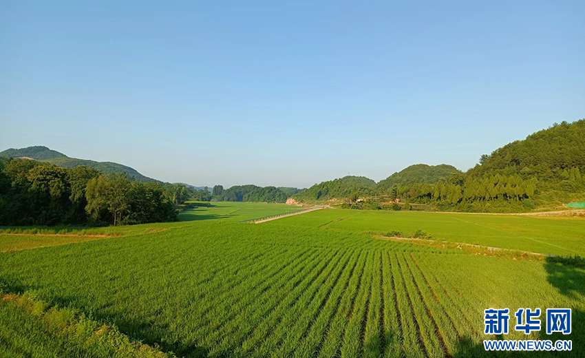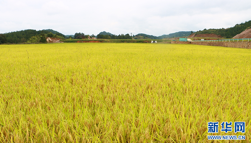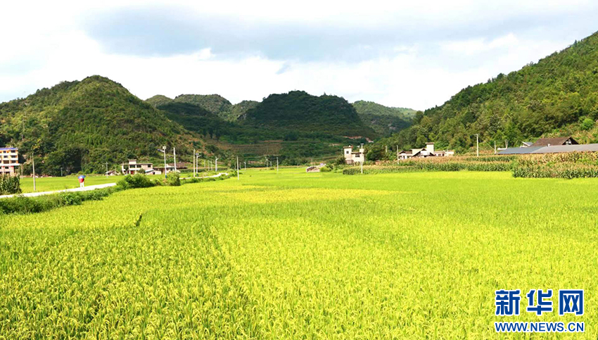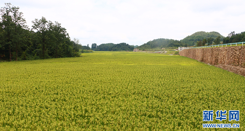 开阳县宅吉乡堰塘村田野里的稻谷长势喜人,丰收在望(8月29日摄)。新华网发(吴忠秀 摄)