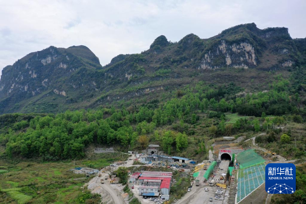 这是2021年3月24日拍摄的九万大山一号隧道出口(无人机照片)。